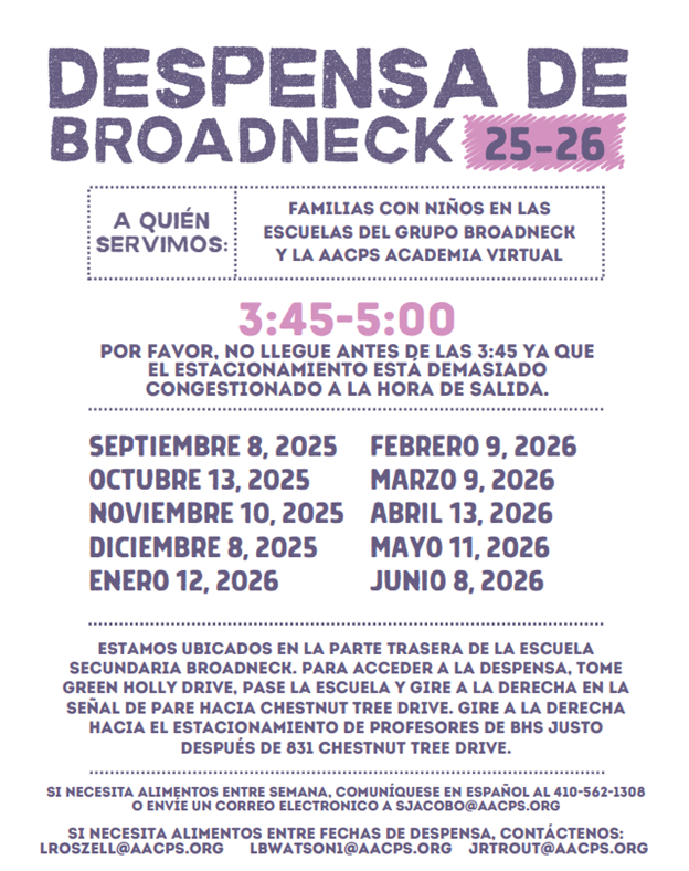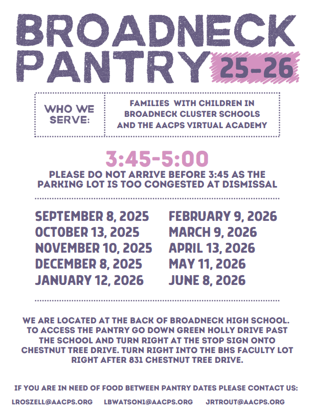 Broadneck High School offers a food pantry giveaway once a month.