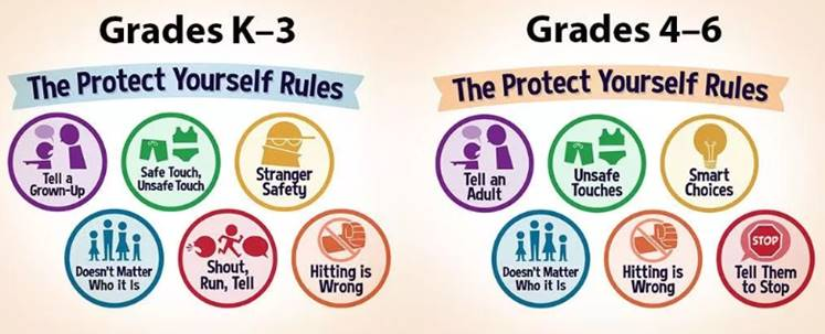 Fifth Grade Parents: Information about registering for Middle School will be coming out SOON! Once I have the information to share with you, we will send it out from the office and through your child’s teacher. There is a lot to think about!! Heather Bachman, M.Ed. School Counselor Cape St. Claire Elementary (410) 222-1685 (School Office) Here is a copy of the Protect Yourself Rules: |