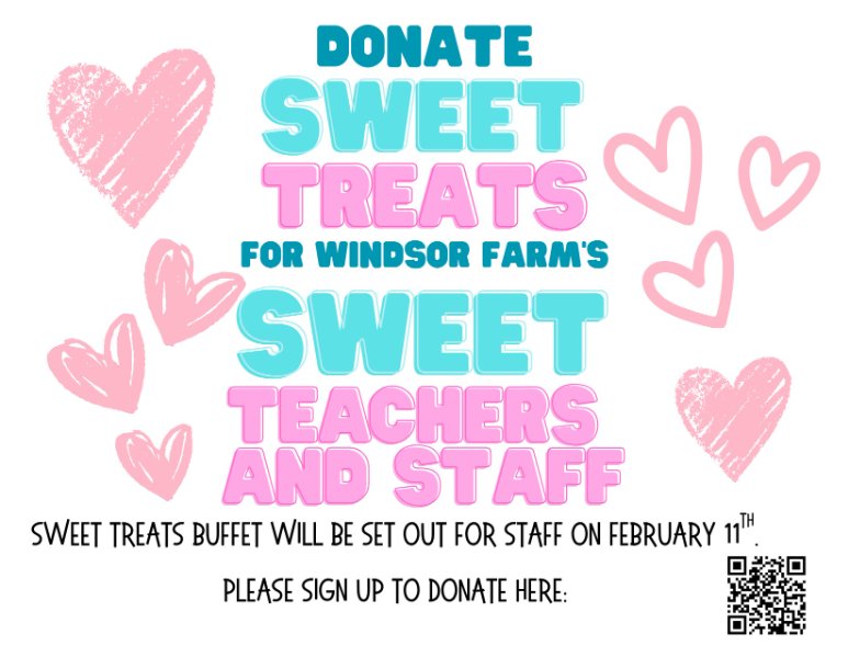 The PTO is hosting a Sweet Treats Buffet on February 11! Please consider donating a sweet treat for teachers and staff!